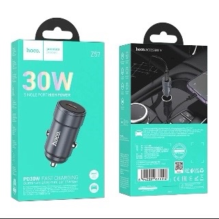 Cargador para auto Hoco Z57 con USB-C y carga rápida PD 30W. Compacto, potente y con cuerpo metálico. Ideal para viajes y uso diario.