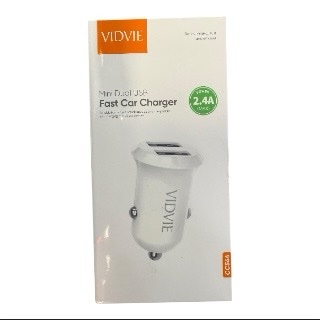 Cargador auto Vidvie CC544 con doble USB y salida de 2.4A, ideal para cargar dos dispositivos a la vez de forma rápida y segura.